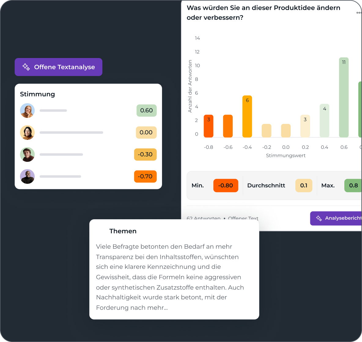 Führen Sie Tests mit einem einzelnen Konzept durch oder vergleichen Sie mehrere Optionen direkt nebeneinander. OnePulse liefert Feedback in Echtzeit von den Zielgruppen, die wirklich zählen, und hilft Ihnen zu verstehen, was heraussticht und warum. Gewinnen Sie schnell Klarheit und lassen Sie die Daten Ihren nächsten Schritt bestimmen.