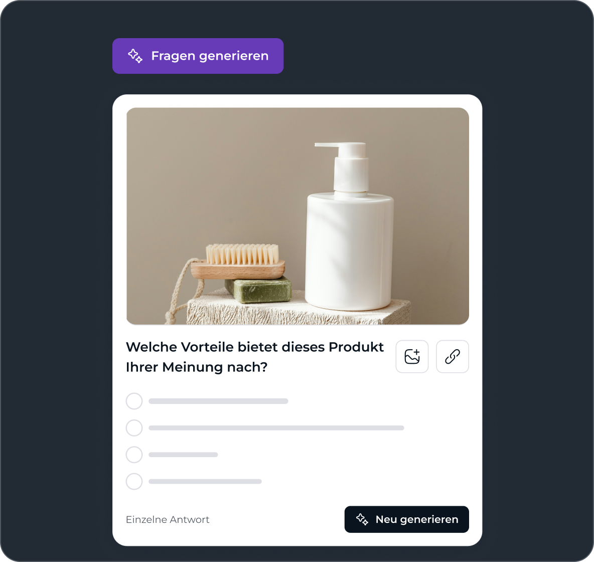 Laden Sie visuelle Inhalte, Videoclips, Mockups oder komplette kreative Assets direkt in Ihren Pulse hoch. Lassen Sie Menschen auf das reagieren, was sie sehen – nicht nur auf das, was sie lesen. Visuelles Konzept-Testing führt zu schärferem, handlungsorientiertem Feedback, das reale Wirkung widerspiegelt.