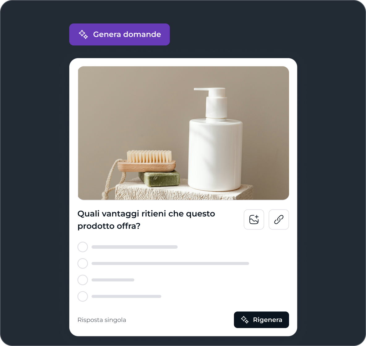 Carica immagini, clip video, mockup o asset creativi completi direttamente nel tuo Pulse. Lascia che le persone reagiscano a ciò che vedono, non solo a ciò che leggono. I test visivi di concetto portano a feedback più chiari, azionabili e che riflettono l’impatto reale.