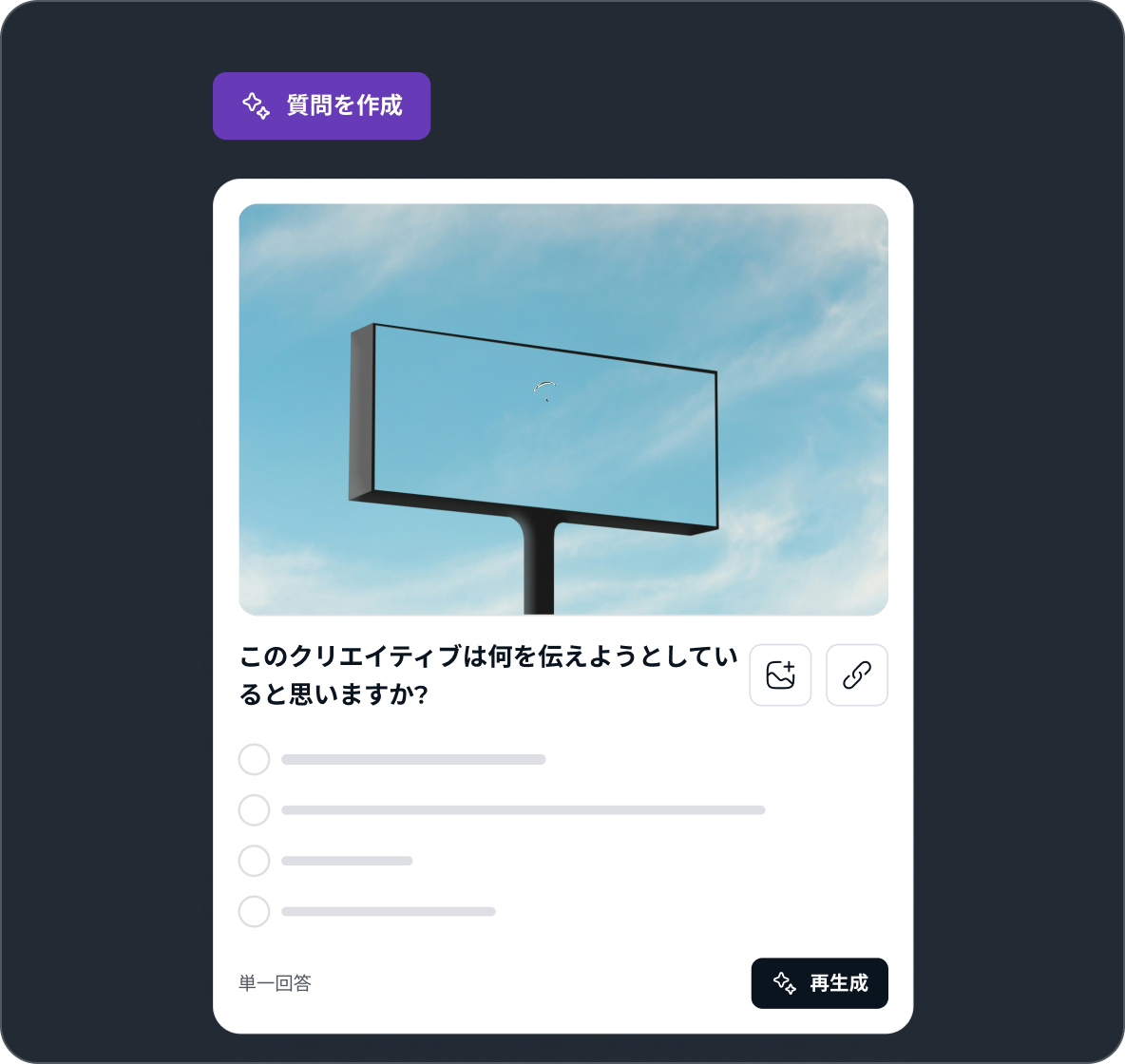 OnePulse では、感情的な反応、自由回答のフィードバック、リアルタイムのセンチメントを収集できます。オーディエンスが「何を言っているか」だけでなく「どう感じているか」を理解できるのです。さらに深く掘り下げ、共鳴する要素を見出し、人々の心に響くクリエイティブを形にしましょう。