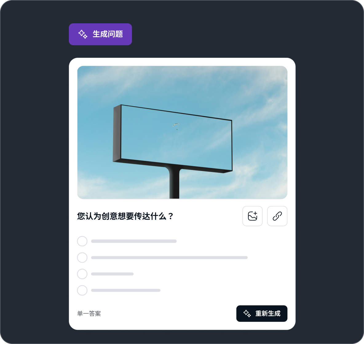 OnePulse 帮助你捕捉情绪反应、开放式反馈以及实时情绪数据,让你不仅理解受众“说了什么”,还理解他们“如何感受”。深入挖掘,发现真正引起共鸣的要素,打造能够连接受众的创意。